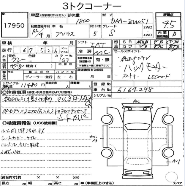 | Model Code | ZVW51 | Auction Grade | 4.5 |