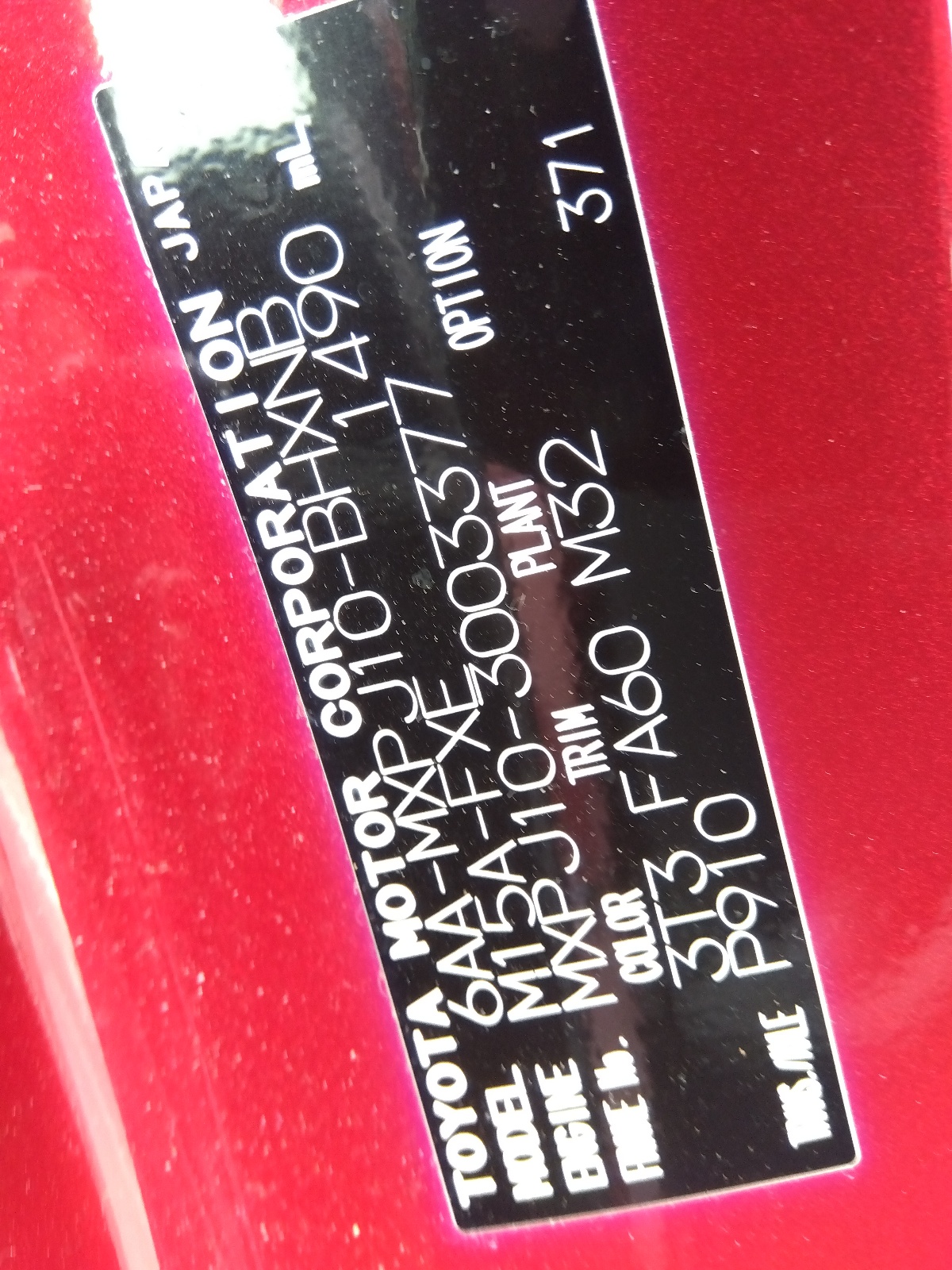 | Drive Type | 4WD | Chassis No. | MXPJ10-3003377 |
